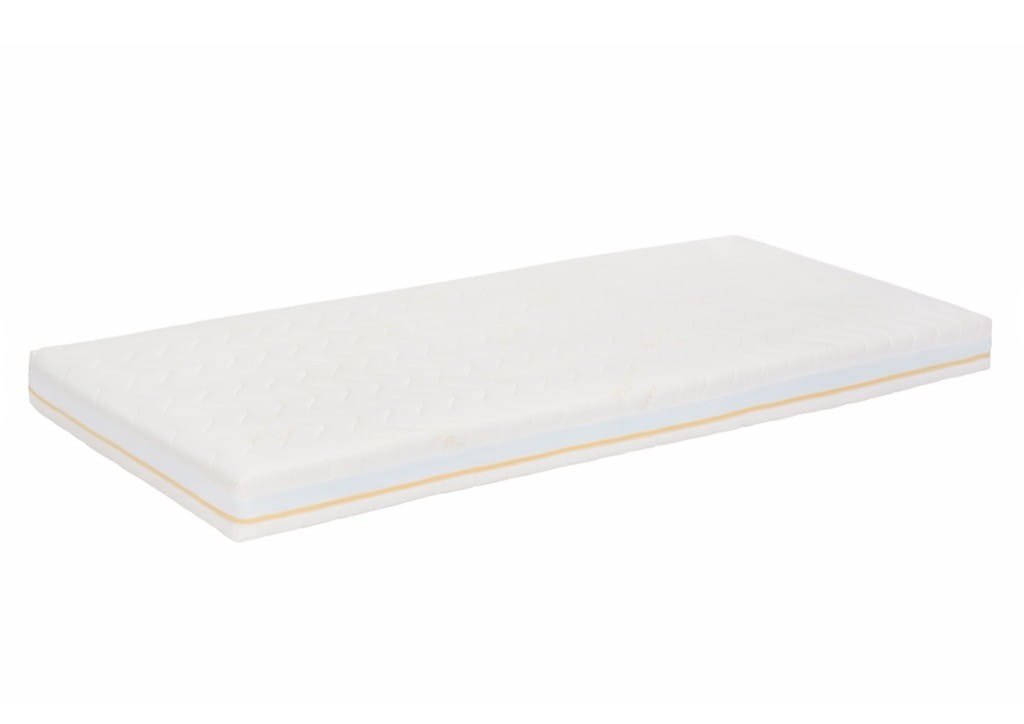 BUDOWA: Płyta z pianki BIO typu kaltschaum o dużej gęstości i twardości, produkowanej z dodatkiem surowców odnawialnych w postaci olejków roślinnych. Płyta z pianki BIO o grubości 7 cm (rozmiary 120/60, 130/70, 140/70 i 160/70) lub 10 cm (od rozmiaru 160/80 do 90/200). Pianka produkowana bez dodatków chlorofluorowęglowodorów (CFC) i lotnych rozpuszczalników organicznych. Wkład piankowy jednostronnie obłożony płytą z elastycznego lateksu typu Ocean Blue grubości 3 cm (dla rozmiarów od 120/60 do 160/70). Lateks z żelem silikonowym wchłania nadmiar wilgoci z otoczenia materaca – zapobiega uczuciu spoconej skóry, poprawia mikroklimat i chroni przed rozwojem grzybów i pleśni.