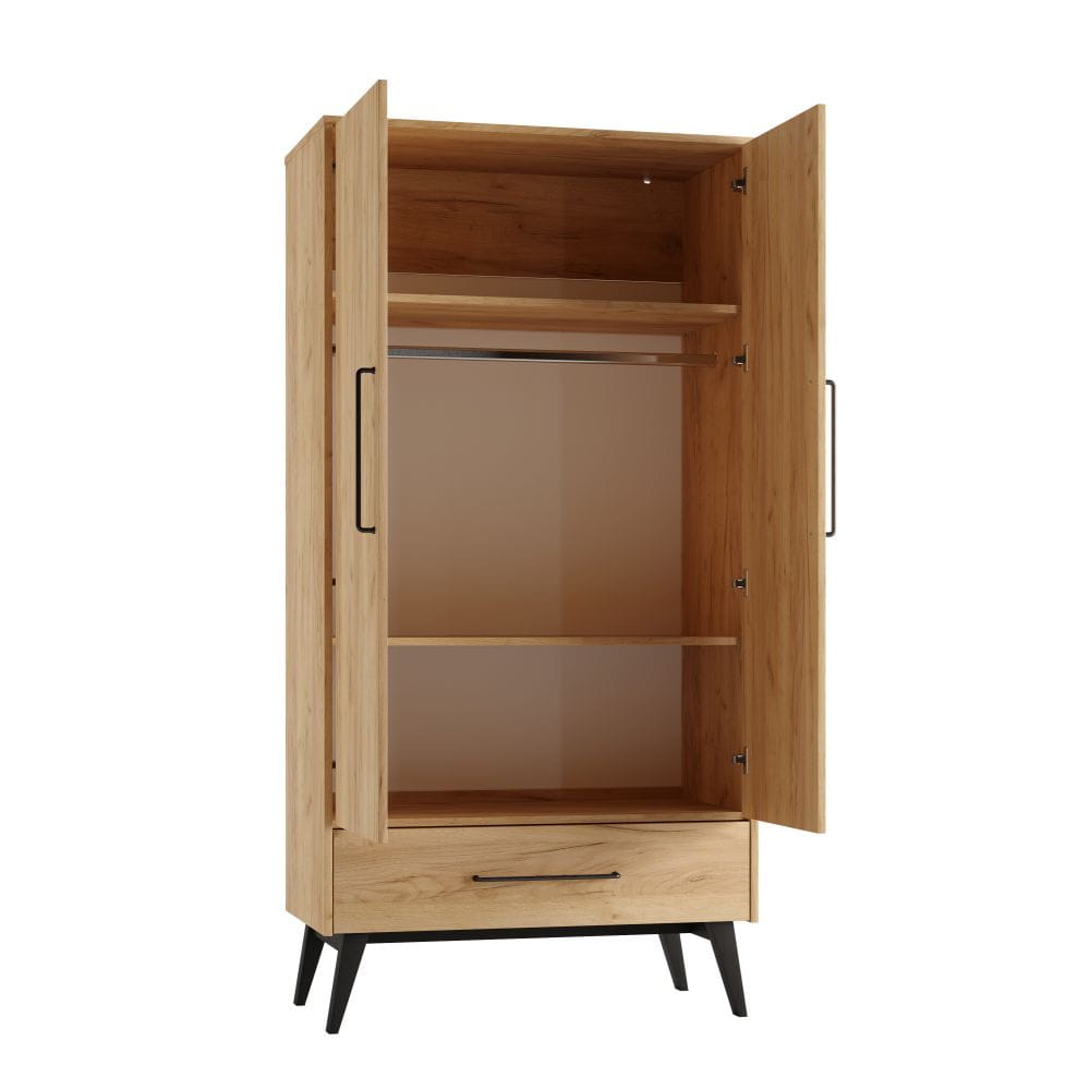 Dwudrzwiowa szafa w modnym stylu loftowym z serii Retro posiada wysokiej jakości system cichego zamykania.