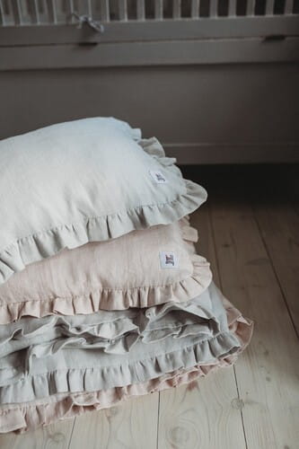 Pościel lniana stone gray z falbanką, bez wypełnienia - M