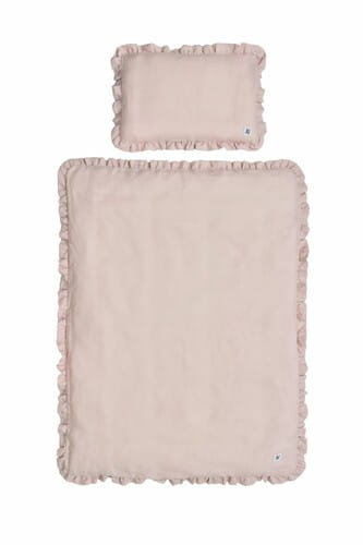 Pościel lniana dusty pink z falbanką, bez wypełnienia -M