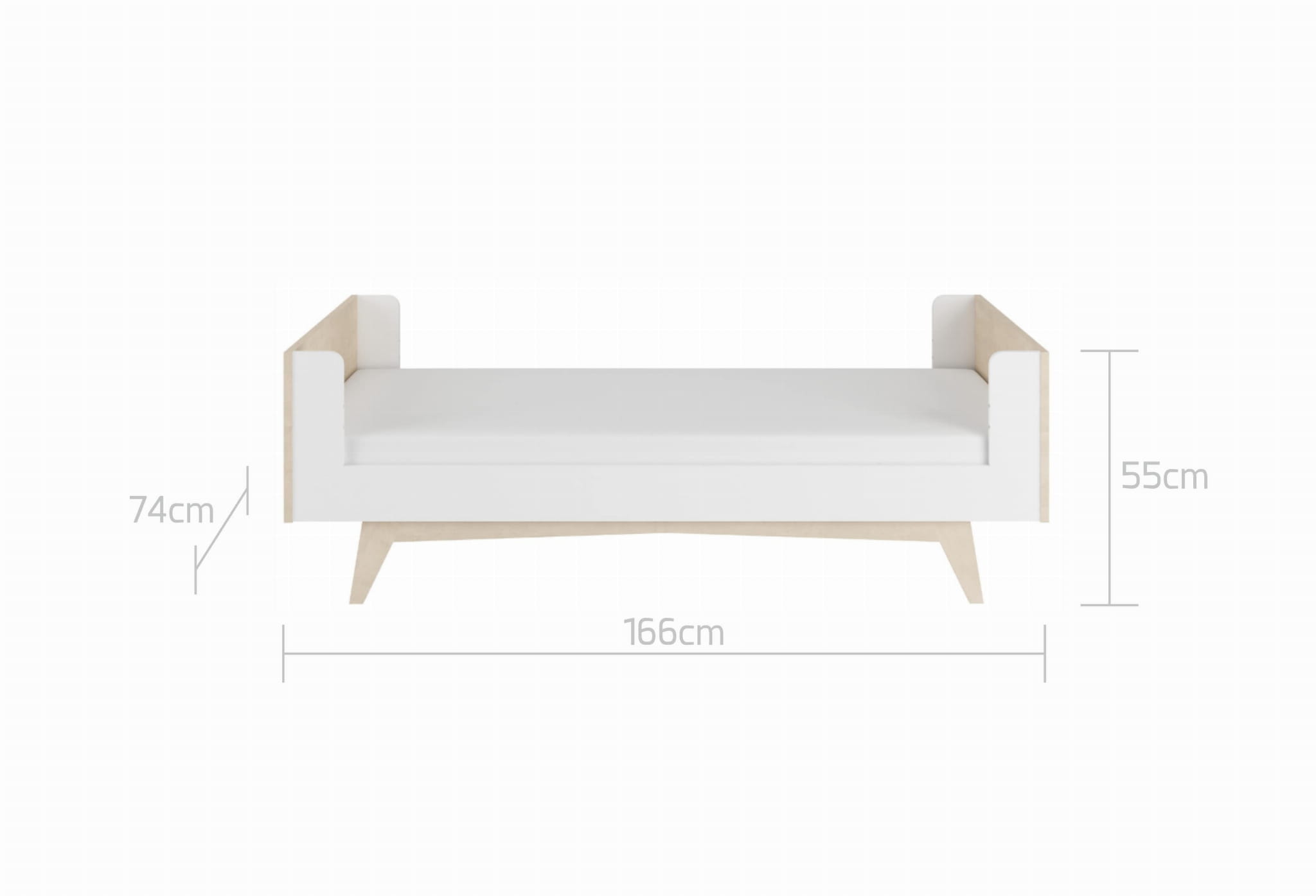 - łóżeczko można rozsunąć do 166 cm i wydłużyć okres użytkowania nawet do ok. 8 lat