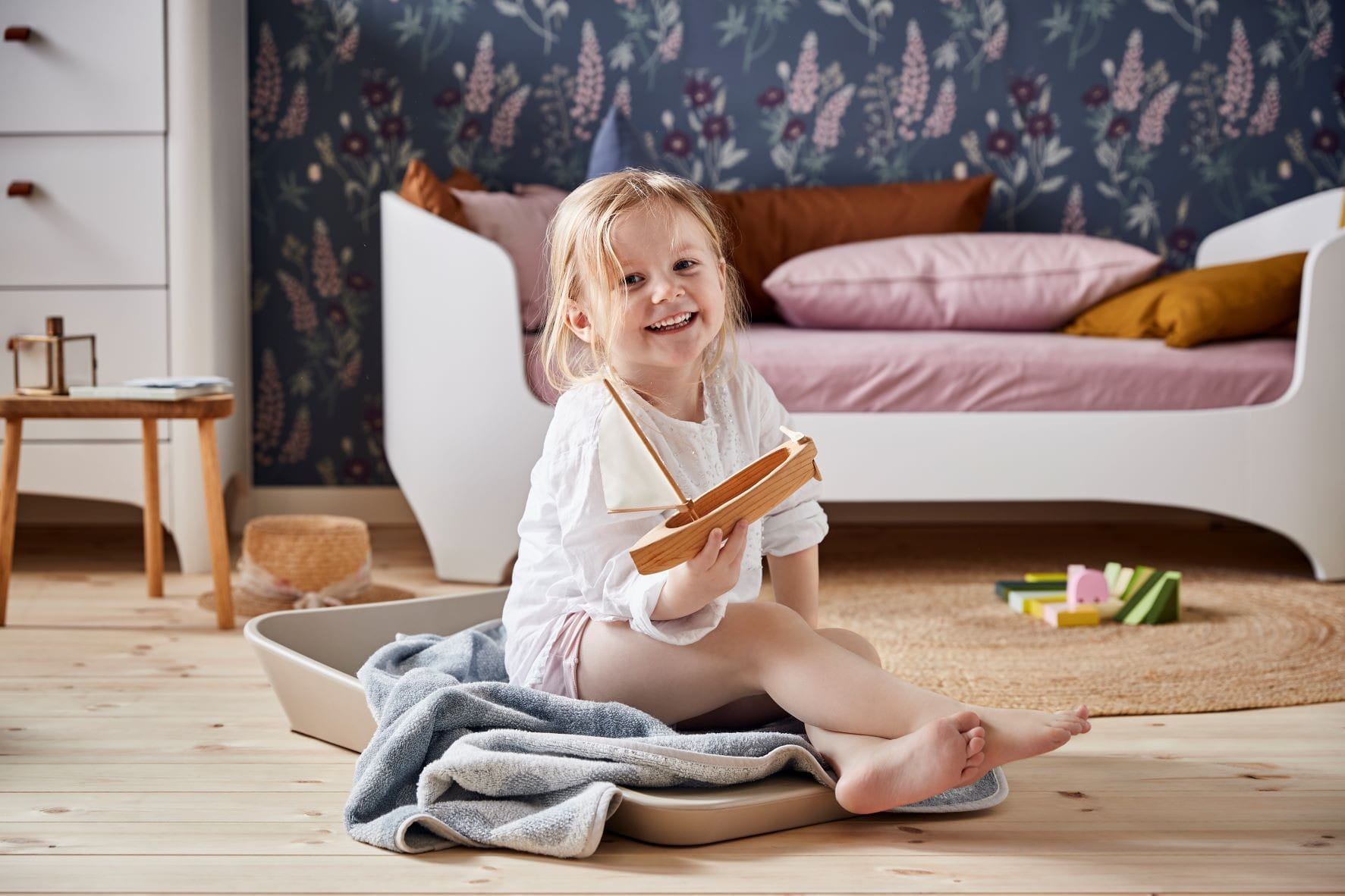 Zacznij od łóżeczka z podniesionym dnem oraz wysokimi barierkami bocznymi i szczytowymi. Gdy Twoje dziecko podrośnie i zacznie wstawać, możesz obniżyć dno. Z czasem maluch będzie w stanie samodzielnie wchodzić do łóżeczka i wychodzić z niego – wówczas możesz usunąć pierwszą z barierek, potem kolejne.