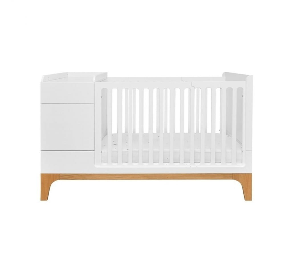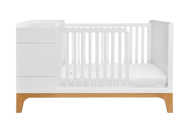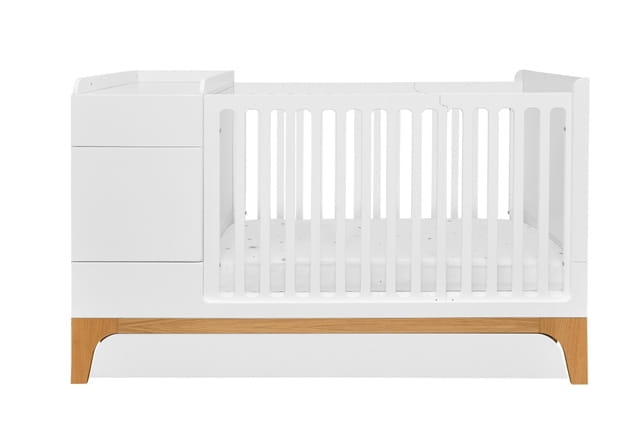 Łóżeczko z szafeczką, przewijakiem, szufladą (opcjonalnie) oraz półkami to mebel zmieniający się wraz z Twoim